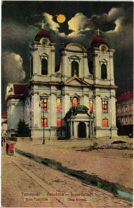 Temesvár, Timisoara; Dóm templom, este / church, night (EK) https://www.darabanth.com/hu/273-Gyorsarveres/273.0/Kepeslapok/Erdely~200005/Temesvar-Timisoara-Dom-templom-este-church-night-EK~II1393565