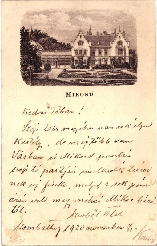 Mikosd, Mikosdpuszta; Kastély, belföldi légiposta bélyegzés https://www.darabanth.com/hu/273-Gyorsarveres/273.0/Kepeslapok/Magyarorszag~200004/Mikosd-Mikosdpuszta-Kastely-belfoldi-legiposta-belyegzes~II1393680