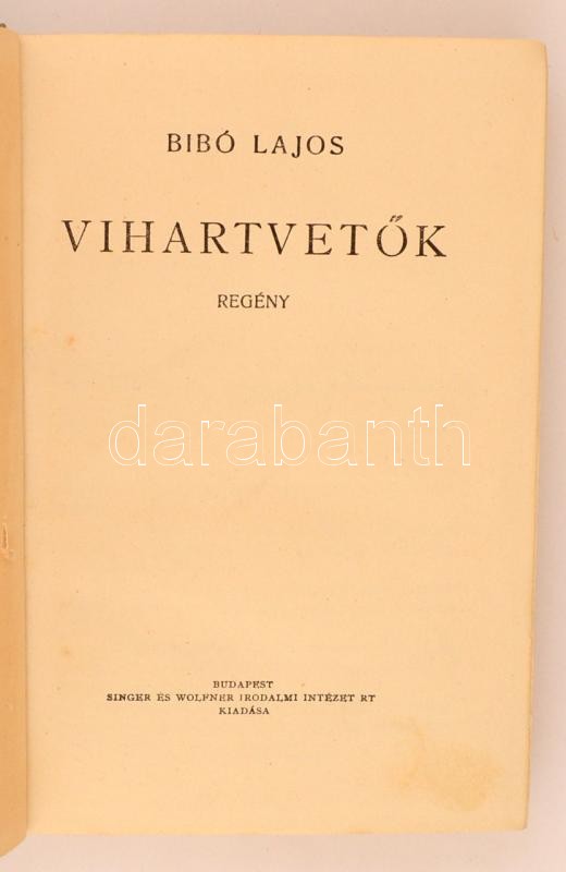 Bibó Lajos: Vihartvetők. Bp., 1933, Singer és Wolfner. Kiadói egészvás... https://www.darabanth.com/hu/273-Gyorsarveres/273.0/Konyvek/Konyvek-Egyeb-ritkasagok~36/Bibo-Lajos-Vihartvetok-Bp-1933-Singer-es-Wolfner-Kiadoi-egeszvaszon-kotes-jo-allapo~II1390486