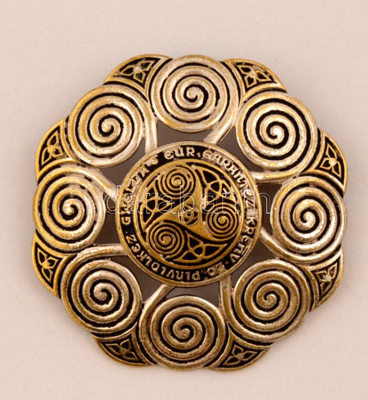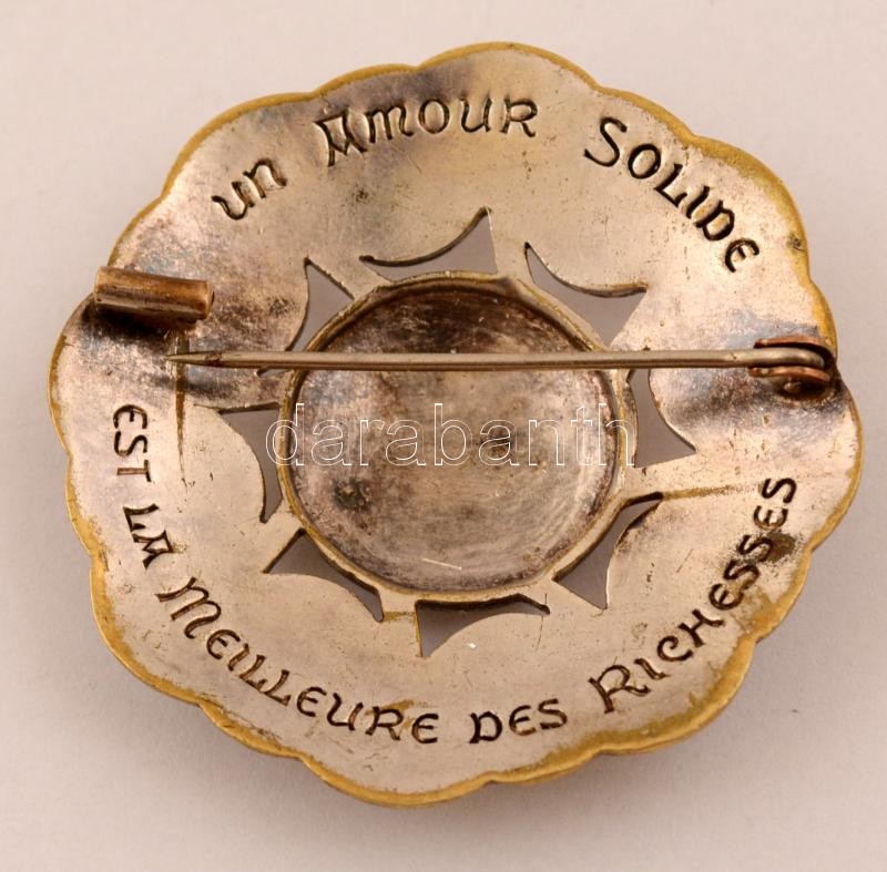 cca 1935 Breton nyelvű felirattal ellátott ezüst bross: "Az erős szeretet a legnagyobb gazdagság" /