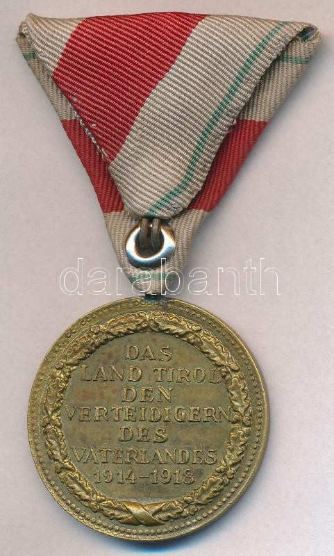 Austria 1928. "Tyrol Commemorative Medal 1914-1918" Br medallion with ribbon "Das Land Tirol - den Verteidgern des Vaterlandes 1914-1918". Sign: TJ C:XF