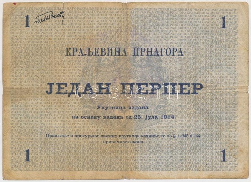 Montenegro 1914. 1 Perper C:VG hole
