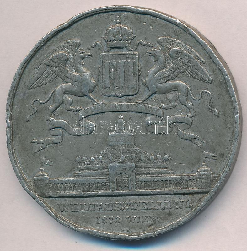 Leírás: Ausztria 1873. "Világkiállítás Bécs 1873" fém emlékérem (52mm) T:2-,3 durva ph.