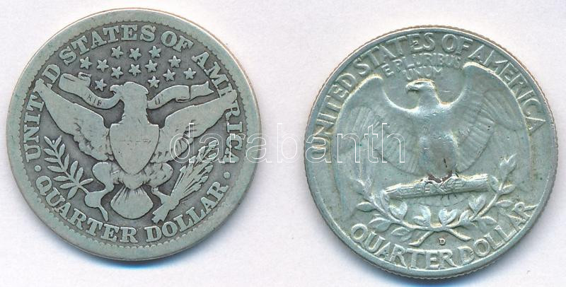 Amerikai Egyesült Államok 1916. 1/4$ Ag "Barber" + 1963D 1/4$ Ag "Washington" T:3,2