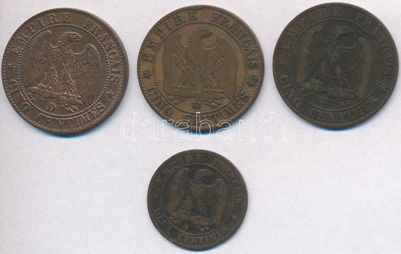 Leírás: Franciaország / Második Császárság 1854W 2c Cu "III. Napóleon" + 1855BB 5c Cu "III. Napóleon" + 1856D 5c Cu "III. Napóleon" + 1864BB 5c Cu "III. Napóleon" T:2,2-