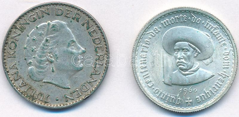 Vegyes: Hollandia 1955. 1G Ag "Julianna" + Portugália 1960. 5E Ag "Tengerész Henrik halálának 500-ik évfordulója" T:2-,1- patina
