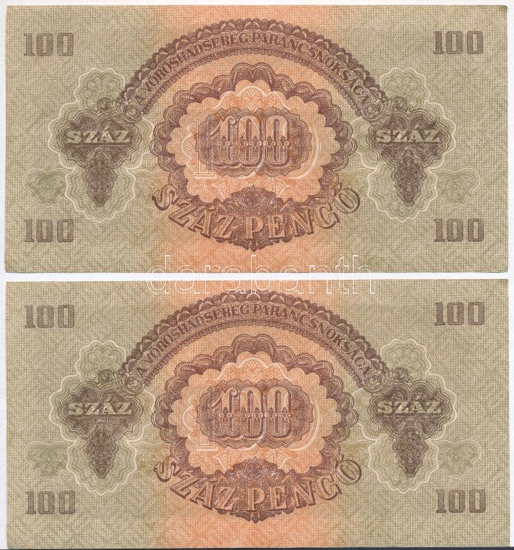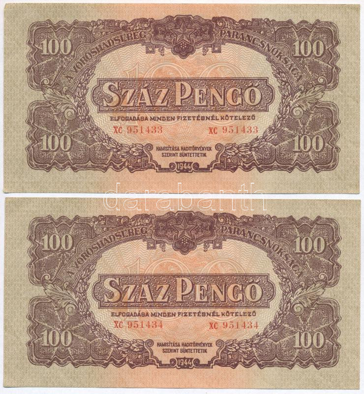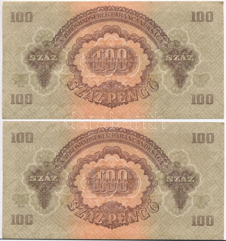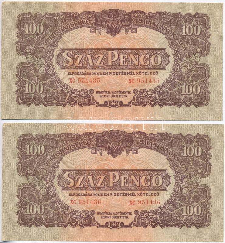 Leírás: 1944. 100P "A Vöröshadsereg Parancsnoksága" (4x) sorszámkövetők T:I-,II