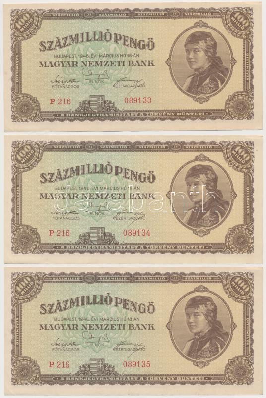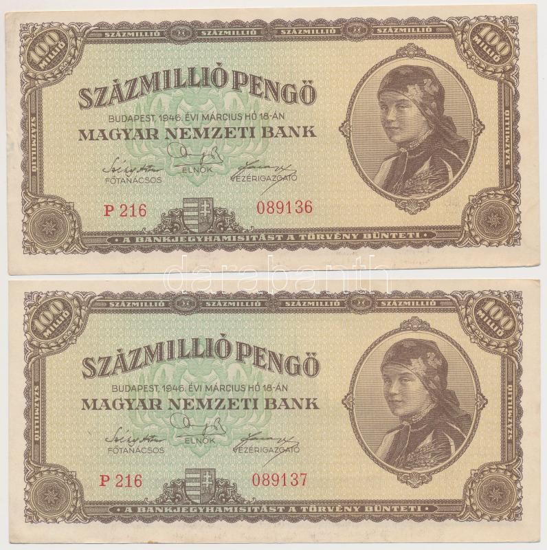 Adamo P27 https://www.darabanth.com/hu/273-Gyorsarveres/273.0/Numizmatika/Magyar-bankjegyek~300008/1946-100000000P-8x-sorszamkovetok-TI-II--Adamo-P27~II1391746
