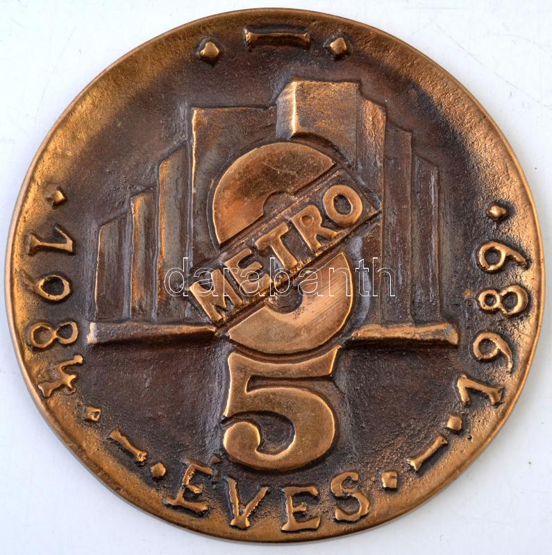 1989. "5 éves - Metró - 1984-1989" Br plakett (106mm) T:2 https://www.darabanth.com/hu/273-Gyorsarveres/273.0/Numizmatika/Magyar-emlekveretek-plakettek~300010/1989-5-eves--Metro--1984-1989-Br-plakett-106mm-T2~II1393556