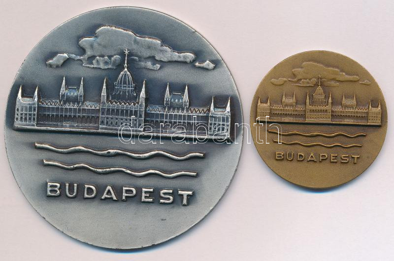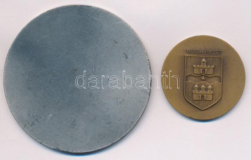 Leírás: ~1970-1980. "Budapest" kétoldalas Br emlékérem, hátoldalon a város címere (40mm) + "Budapest" egyoldalas ezüstözött fém emlékérem (71mm) T:2 kis ph.
