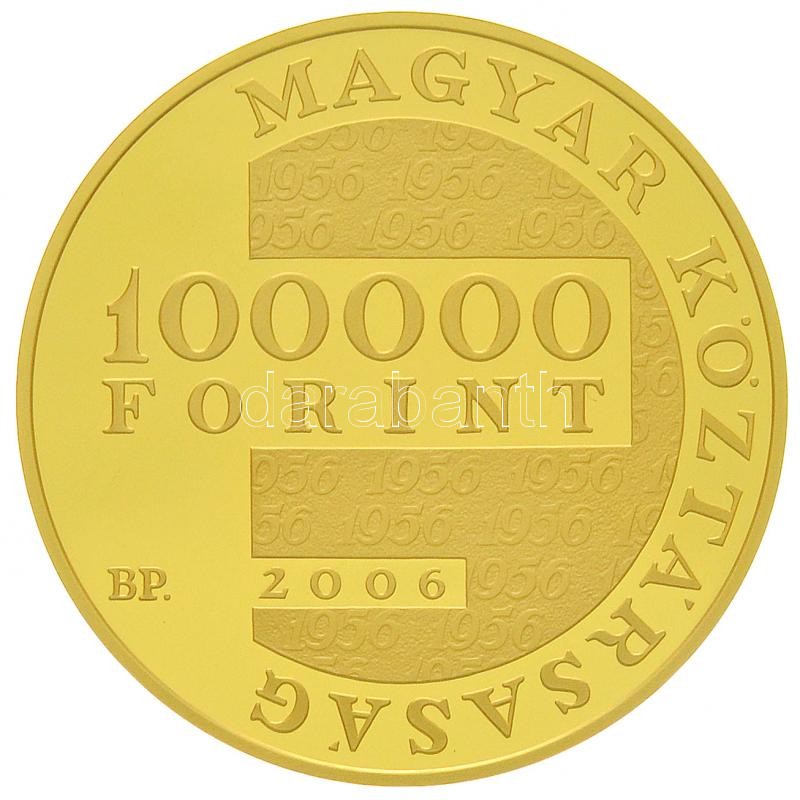 2006. 100.000Ft Au "Az 1956-os magyar forradalom és szabadságharc 50. évfordulója" (21,04g/0.986) T:PP kis felületi karc Hungary 2006. 100.000 Forint "50th Anniversary of the 1956 Hungarian Revolution and War of Independence" (21,04g/0.986) C:PP slightly scratched Adamo EM207