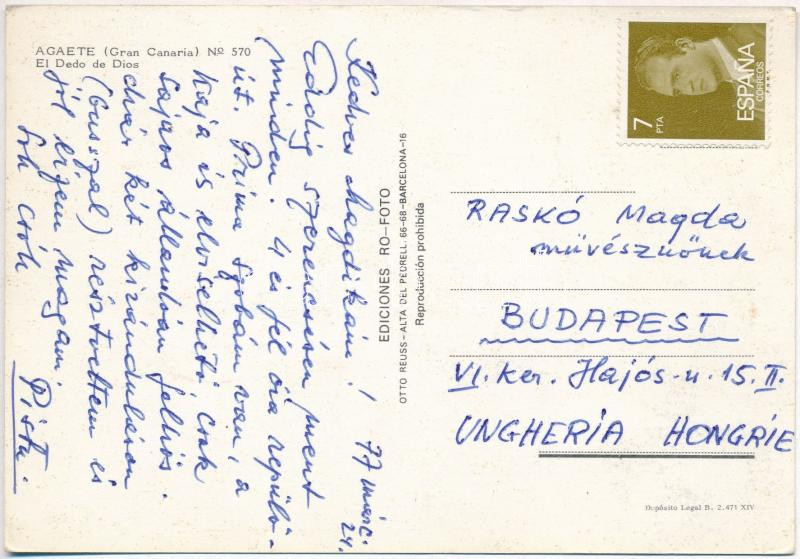 1977 Raskó Magda színművésznőnek címzett levelezőlap https://www.darabanth.com/hu/274-Gyorsarveres/274.0/Festmeny-mutargy-papirregiseg-egyeb/Alairas~18/1977-Rasko-Magda-szinmuvesznonek-cimzett-levelezolap~II1397950