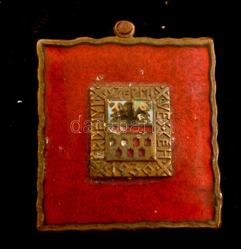 Leírás: 1936 Erdélyi Szépmíves Céh zománc címere, képkeretben, némi kopással, pici sérülésekkel, 3x3 cm, képkeret: 11x8 cm.