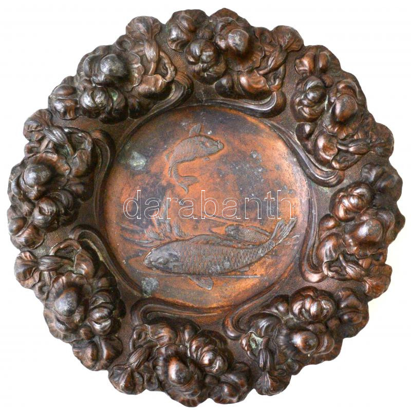 Leírás: Bronzírozott, halas, fém dísztál, d:25cm