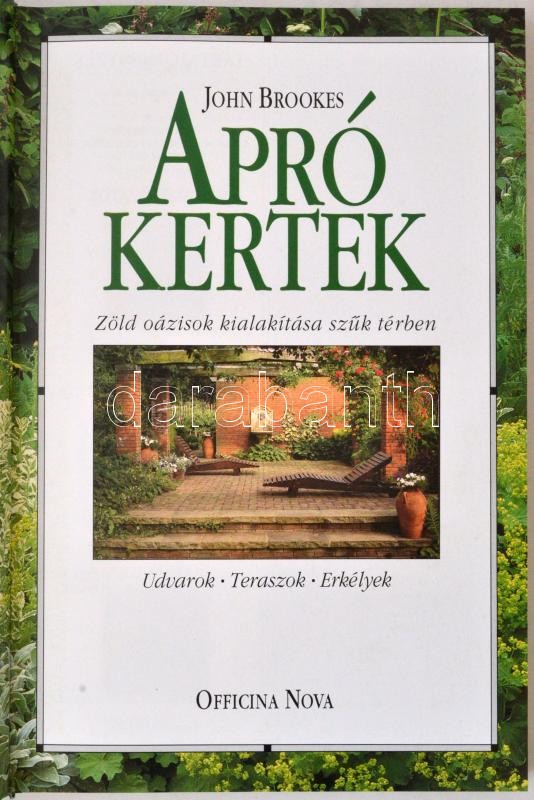 Brookes, John: Apró kertek. Zöld oázisok kialakítása szűk térben. Bp., 1993, Officina Nova. Kiadói kartonált kötés, sok színes képpel illusztrált, jó állapotban.