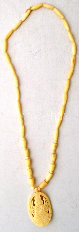 Leírás: Csont nyaklánc faragott medállal, h:27,5 cm