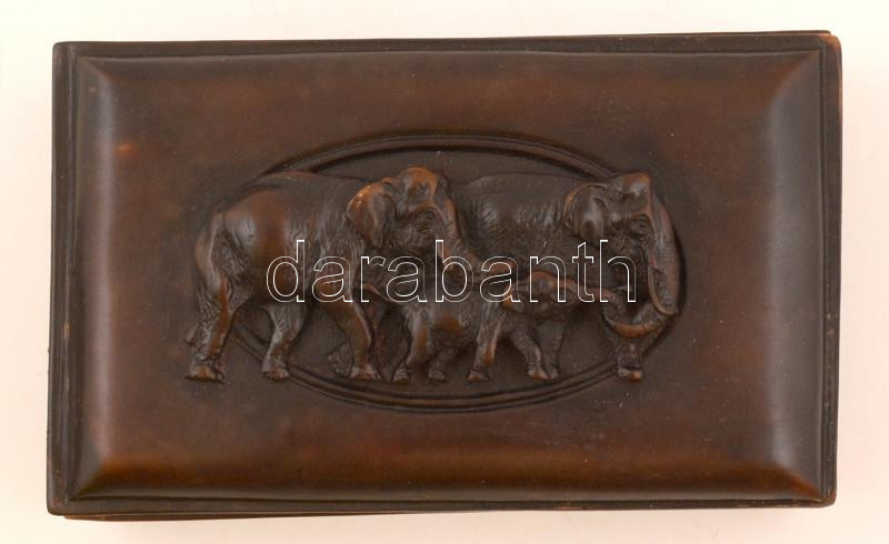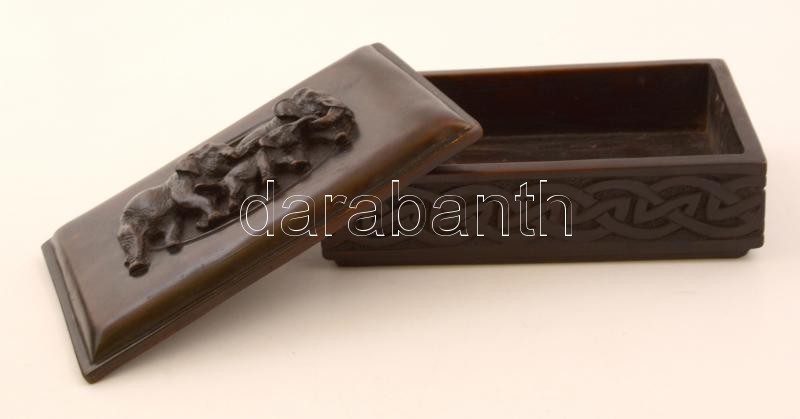 Leírás: Díszes elefántos festett műgyanta doboz, 16×10×6 cm