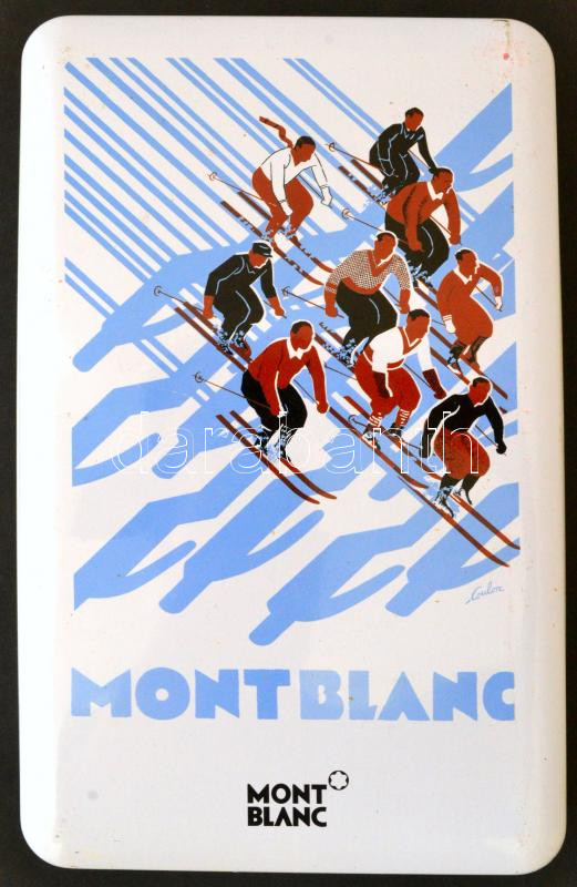 Leírás: Mont Blanc fém csokoládés doboz, jó állapotban, 23,5×14,5×5 cm