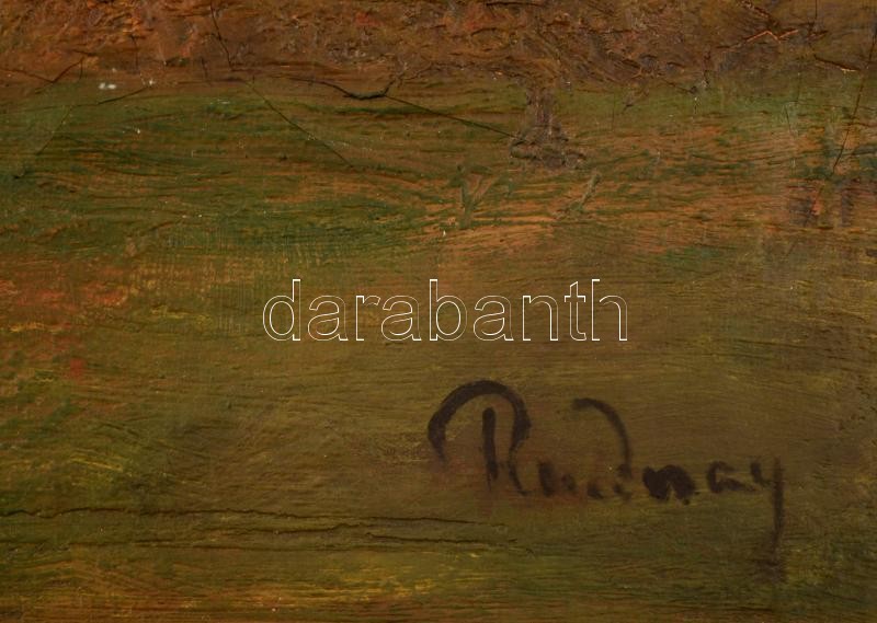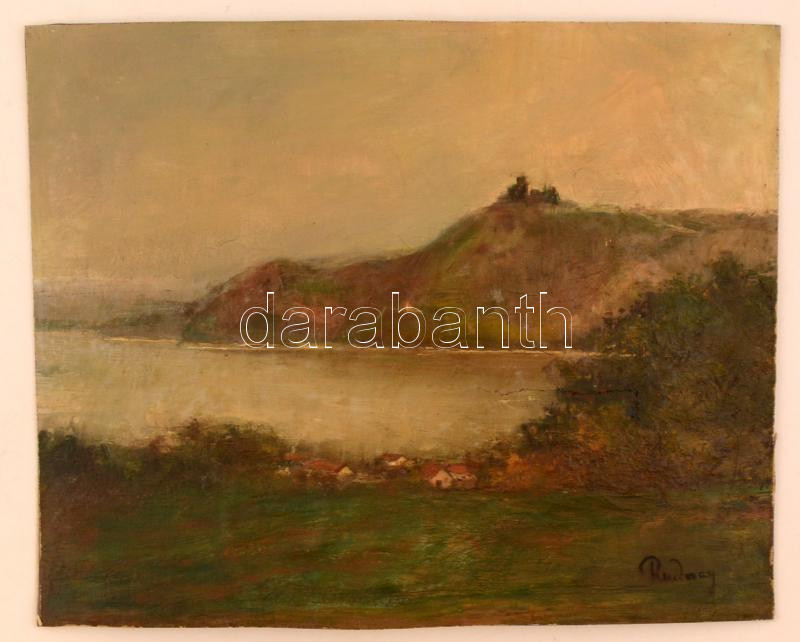 Leírás: Rudnay jelzéssel: Vár a dombon, olaj, vászon kartonra kasírozva, repedéssel, 39x48cm