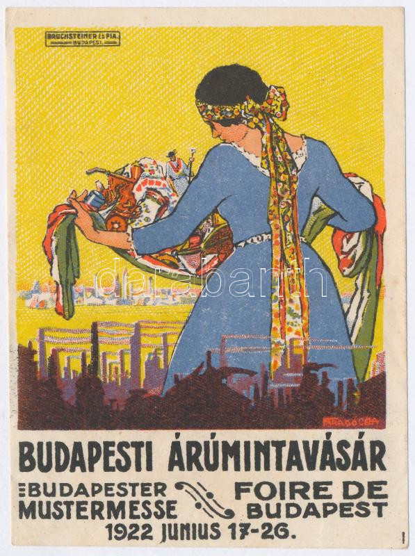 1922 Bp., A Budapesti Árumintavásár reklámcédulája, 12x9 cm https://www.darabanth.com/hu/274-Gyorsarveres/274.0/Festmeny-mutargy-papirregiseg-egyeb/Nyomtatvanyok~28/1922-Bp-A-Budapesti-Arumintavasar-reklamcedulaja-12x9-cm~II1399614