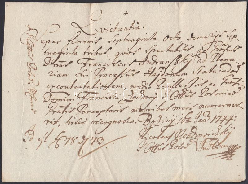 1744 Bazin (Pezinok), latin nyelvű adóslevél https://www.darabanth.com/hu/274-Gyorsarveres/274.0/Festmeny-mutargy-papirregiseg-egyeb/Okmanyok~16/1744-Bazin-Pezinok-latin-nyelvu-adoslevel~II1401484