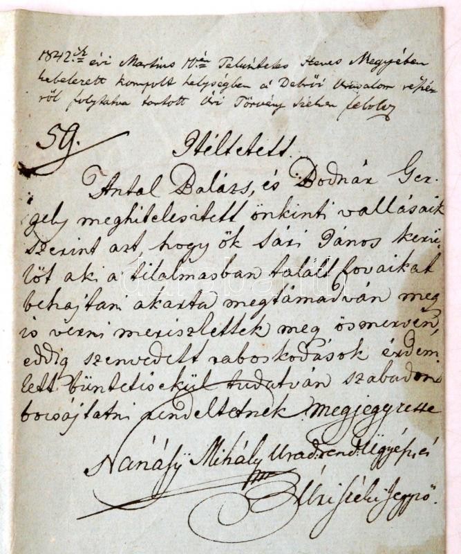 1842 Kompolt, Tilosban való legeltetés és verekedés tárgyában hozott í... https://www.darabanth.com/hu/274-Gyorsarveres/274.0/Festmeny-mutargy-papirregiseg-egyeb/Okmanyok~16/1842-Kompolt-Tilosban-valo-legeltetes-es-verekedes-targyaban-hozott-itelet-a-debroi-uradal~II1400680
