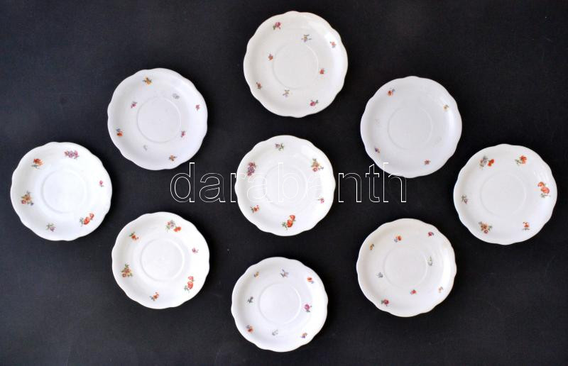 Leírás: Zsolnay teás csészealjak (9db), matricás, jelzett, kopott, d:15 db (9 db)