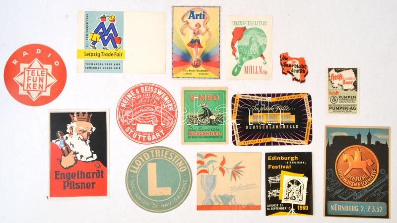 Leírás: Vegyes külföldi reklámnyomtatvány tétel, különböző méretben és minőségben, 16db, cca 5x4cm és 14x10cm / mixed vintage advertising labels