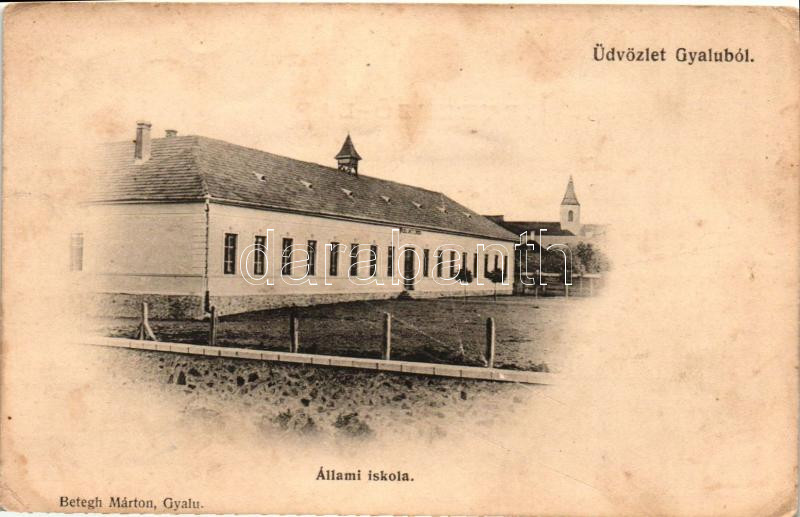 Gyalu, Gilau; Állami iskola, kiadja Betegh Márton / school (EK) https://www.darabanth.com/hu/274-Gyorsarveres/274.0/Kepeslapok/Erdely~400007/Gyalu-Gilau-Allami-iskola-kiadja-Betegh-Marton-school-EK~II1400273