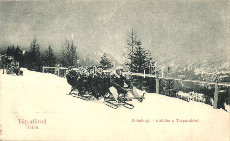 Leírás: Tátrafüred, Bobsleigh télen, indulás a Tarpatakból / bobsleigh, winter sport (EB)