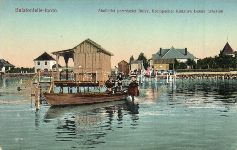Leírás: Balatonlelle-fürdő, Alsólellei partrészlet, Bolya, Krompecher, Kistanya, Lessik nyaralok, kiadja Wollák József utódai