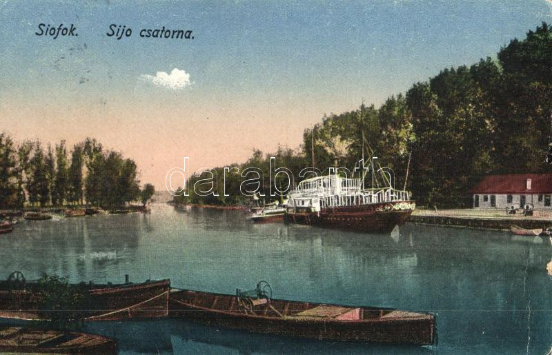 Siófok, Sió csatorna, Baross gőzhajó (kis szakadás / small tear) https://www.darabanth.com/hu/274-Gyorsarveres/274.0/Kepeslapok/Magyarorszag~400006/Siofok-Sio-csatorna-Baross-gozhajo-kis-szakadas-small-tear~II1399124