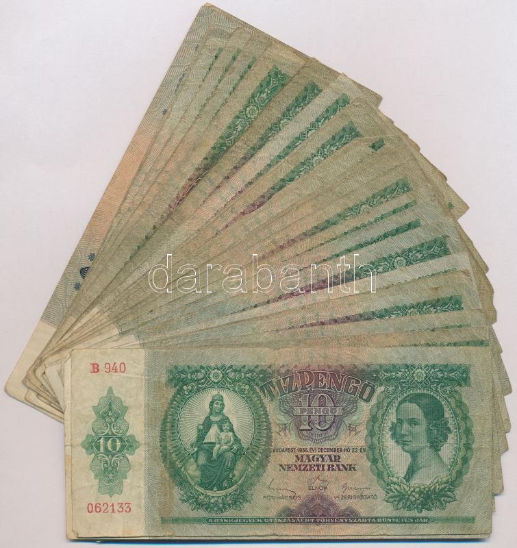 1936. 10P (27x) + 1941. 20P (3x) T:III https://www.darabanth.com/hu/274-Gyorsarveres/274.0/Numizmatika/Magyar-bankjegyek~200011/1936-10P-27x-plus-1941-20P-3x-TIII~II1398200