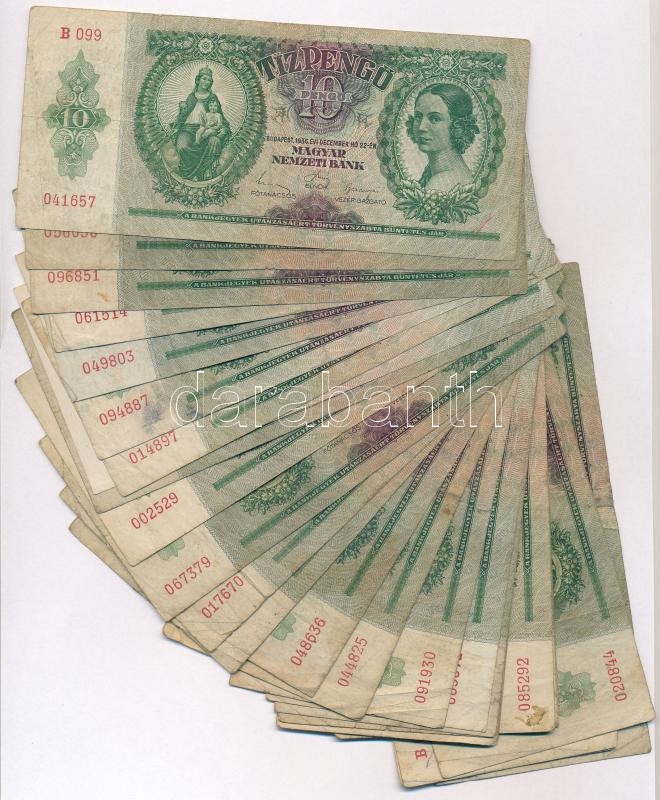 1936. 10P (30x) T:III,III- https://www.darabanth.com/hu/274-Gyorsarveres/274.0/Numizmatika/Magyar-bankjegyek~200011/1936-10P-30x-TIII-III-~II1398057