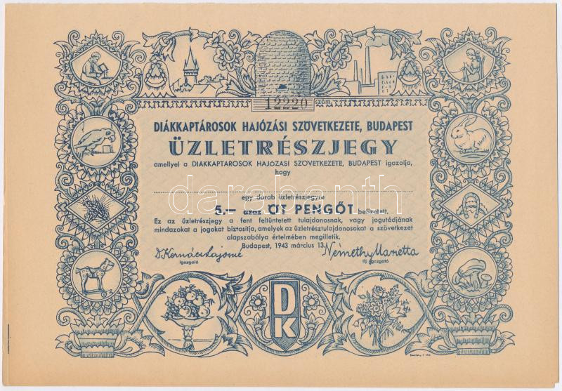 Budapest 1943. "Diákkaptárosok Hajózási Szövetkezete" üzletrészjegy 5P... https://www.darabanth.com/hu/274-Gyorsarveres/274.0/Numizmatika/Reszvenyek-es-sorsjegyek~200008/Budapest-1943-Diakkaptarosok-Hajozasi-Szovetkezete-uzletreszjegy-5P-rol-kitoltetlen-sz~II1397483
