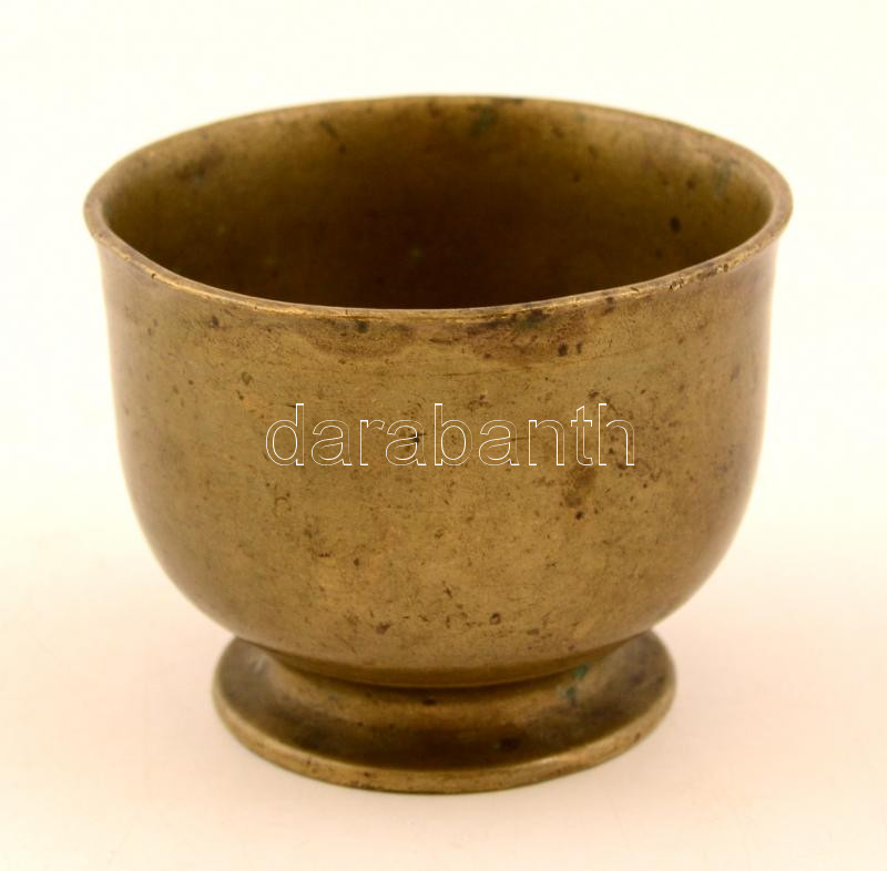 Leírás: Antik talpas mozsár, bronz, jelzett, m:7,5 cm, d:9,5 cm
