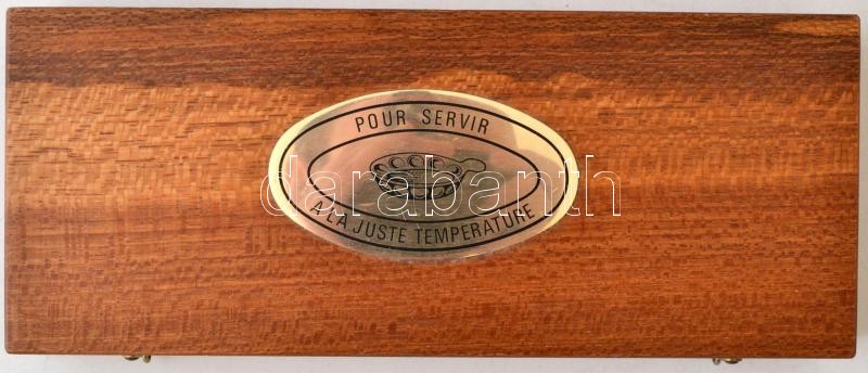 Leírás: Borfokoló készlet fa dobozban, teljes készlet, szép állapotban, 10x25x3cm