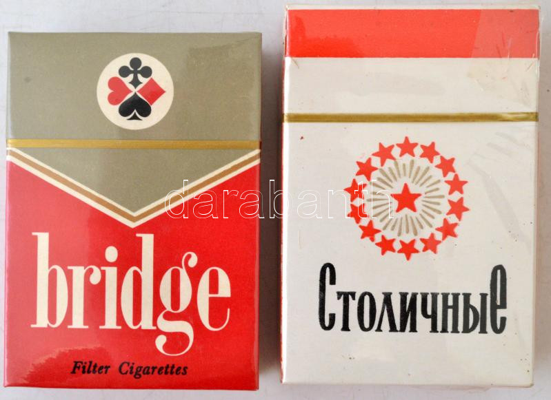 "Bridge", és Sztolicsnyie" cigaretta, bontatlan, 2 csomag https://www.darabanth.com/hu/275-Gyorsarveres/275.0/Festmeny-mutargy-papirregiseg-egyeb/Bolhapiac~200233/Bridge-es-Sztolicsnyie-cigaretta-bontatlan-2-csomag~II1402214