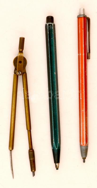 Leírás: Vegyes írószer tétel, 3 db: Lemezárugyár "Stadion", Mofém töltőceruzák, valamint egy régi körző.