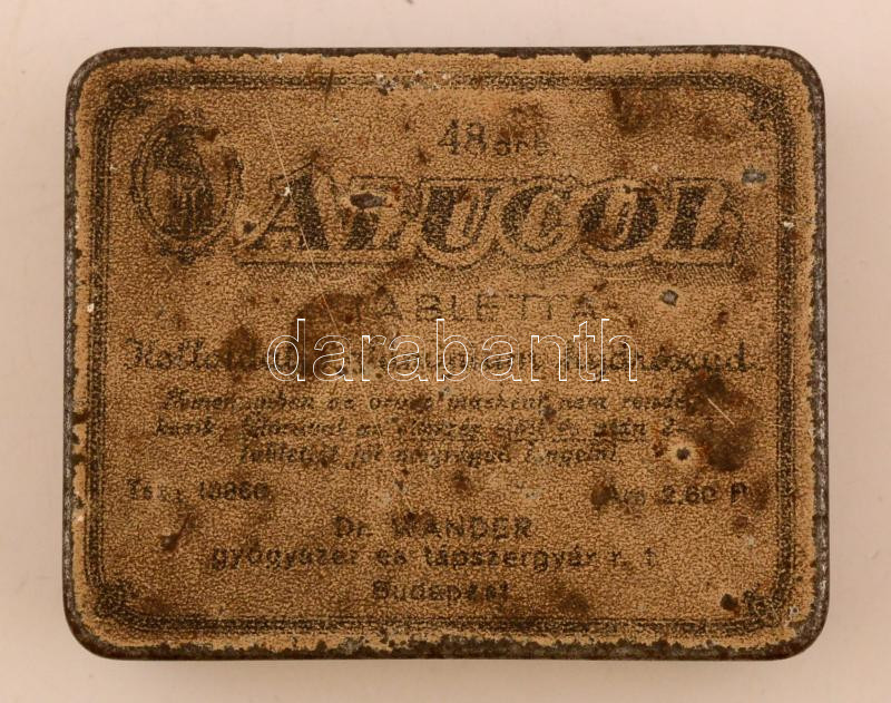cca 1930 Alucol, Dr. Wander Gyógyszer- és tápszergyár r.t. Budapest, f... https://www.darabanth.com/hu/275-Gyorsarveres/275.0/Festmeny-mutargy-papirregiseg-egyeb/Bolhapiac~200233/cca-1930-Alucol-Dr-Wander-Gyogyszer-es-tapszergyar-rt-Budapest-fem-gyogyszeres-doboz-ko~II1407955