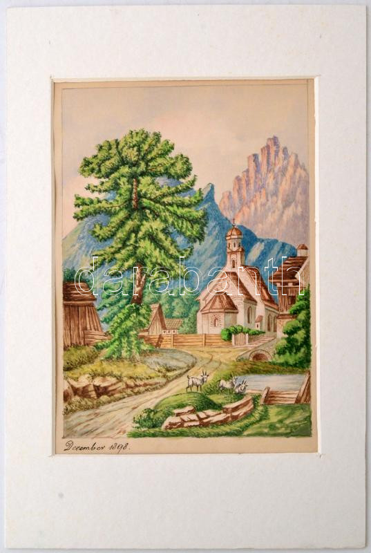 Jelzés nélkül: Alpesi falu 1898, akvarell, papír, paszpartuban, 20,5×1... https://www.darabanth.com/hu/275-Gyorsarveres/275.0/Festmeny-mutargy-papirregiseg-egyeb/Festmenyek-es-grafikak~200223/Jelzes-nelkul-Alpesi-falu-1898-akvarell-papir-paszpartuban-20-5C39714-5-cm~II1405095