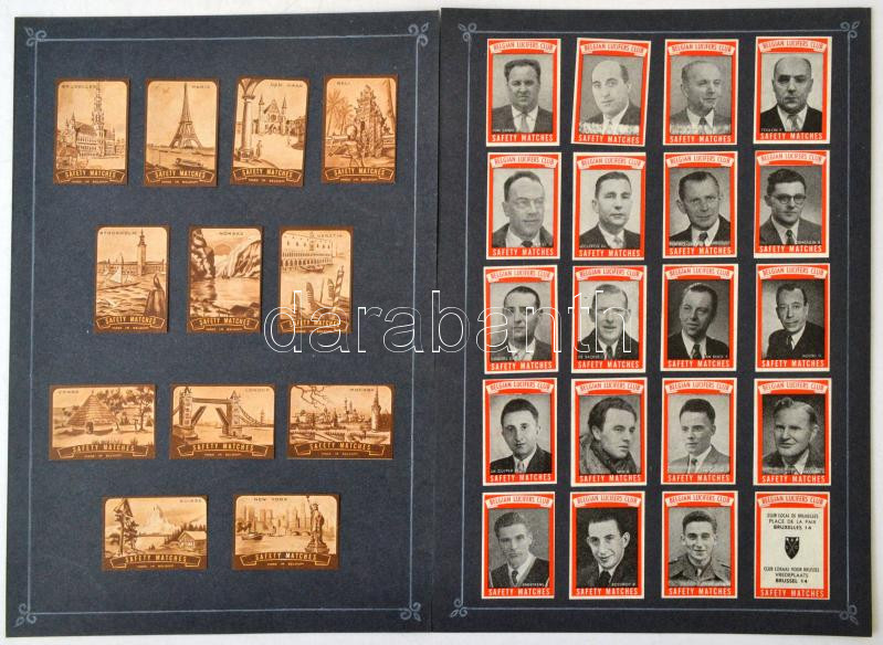 Belga gyufacímke gyűjtemény:szabadidő, sport, híres emberek, városok, katonazenekar, karikatúrák, stb. témában, 13db kartonon, 240db, különböző méretben