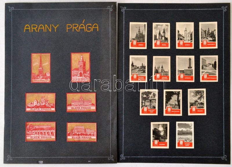 Leírás: Csehszlovák és szovjet gyufacímke gyűjtemény:Arany Prága, városok, várak, sport, erdőművelés, stb. témában, 9db kartonon, 135db, különböző méretben