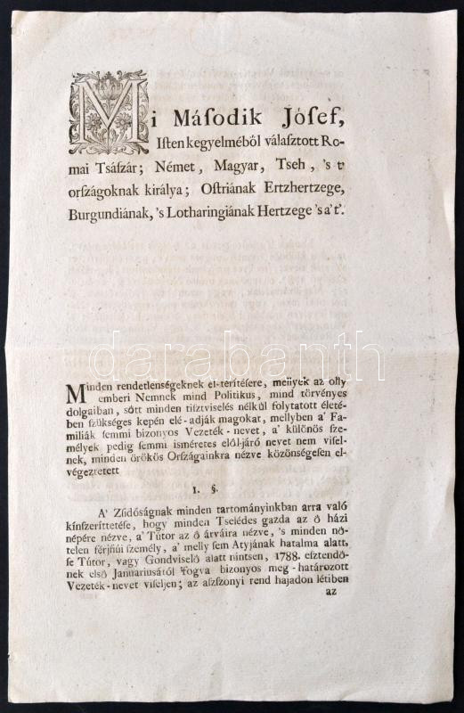 1787 II: Józsefnek a zsidók névviseléséről szóló rendelete, melyben kö... https://www.darabanth.com/hu/275-Gyorsarveres/275.0/Festmeny-mutargy-papirregiseg-egyeb/Judaika~200245/1787-II-Jozsefnek-a-zsidok-nevviseleserol-szolo-rendelete-melyben-kotelezi-oket-nemet-n~II1405785