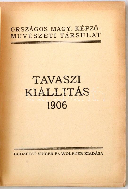 1906 Tavaszi Kiállítás, Orsz. Magyar Képzőművészeti Társulat, Singer é... https://www.darabanth.com/hu/275-Gyorsarveres/275.0/Festmeny-mutargy-papirregiseg-egyeb/Nyomtatvanyok~200265/1906-Tavaszi-Kiallitas-Orsz-Magyar-Kepzomuveszeti-Tarsulat-Singer-es-Wolfner-Sok-fotov~II1402393