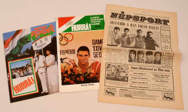 Leírás: 1988 2 db sportújság (Népsport, Képes Sport) szöuli olimpiai hírekkel + 1 db szöuli olimpiai poszteralbum