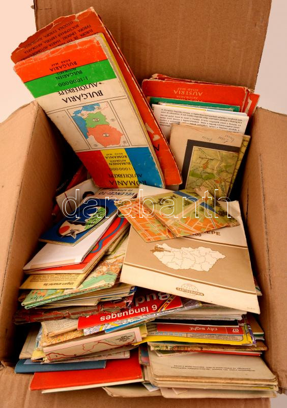 Nagy vegyes retró térkép tétel: város- és országtérképek vegyesen, részben átnézetlen, érdekes anyag