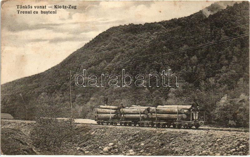 Magyar-román határvidék; Tönkös vonat, favágók és farönkök, kiadja Adl... https://www.darabanth.com/hu/275-Gyorsarveres/275.0/Kepeslapok/Erdely~400011/Magyar-roman-hatarvidek-Tonkos-vonat-favagok-es-faronkok-kiadja-Adler-es-fia-Brasso-~II1408322