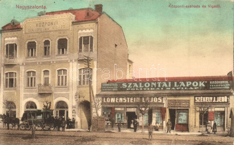 Nagyszalonta, Salonta; Központi szálloda, vigadó, Löwenstein Lajos, Sz... https://www.darabanth.com/hu/275-Gyorsarveres/275.0/Kepeslapok/Erdely~400011/Nagyszalonta-Salonta-Kozponti-szalloda-vigado-Lowenstein-Lajos-Szekely-J-Jeno-uzletei-~II1407312