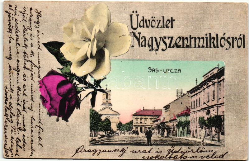 Nagyszentmiklós, Sannicolau Mare; Sas utca, templom / street, church (... https://www.darabanth.com/hu/275-Gyorsarveres/275.0/Kepeslapok/Erdely~400011/Nagyszentmiklos-Sannicolau-Mare-Sas-utca-templom-street-church-EB~II1407524